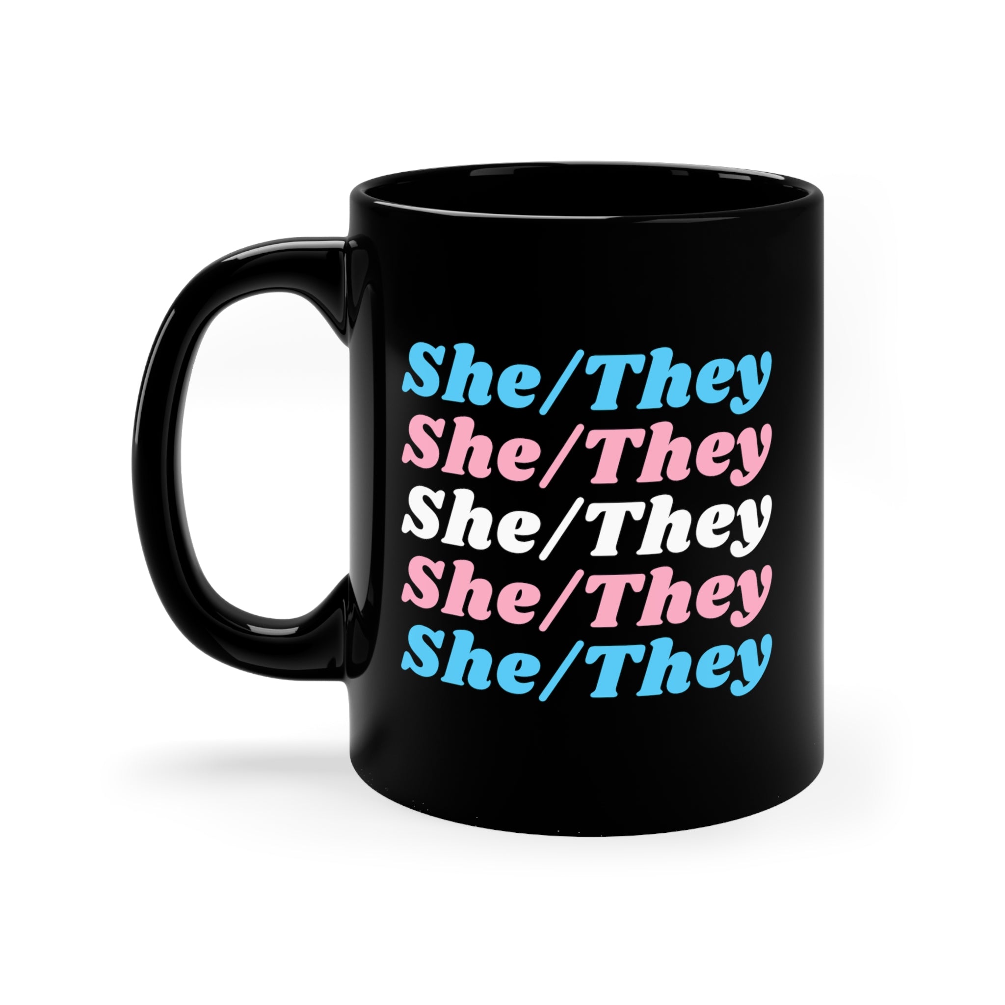 She/They Transgender Flag Pronoun Mug